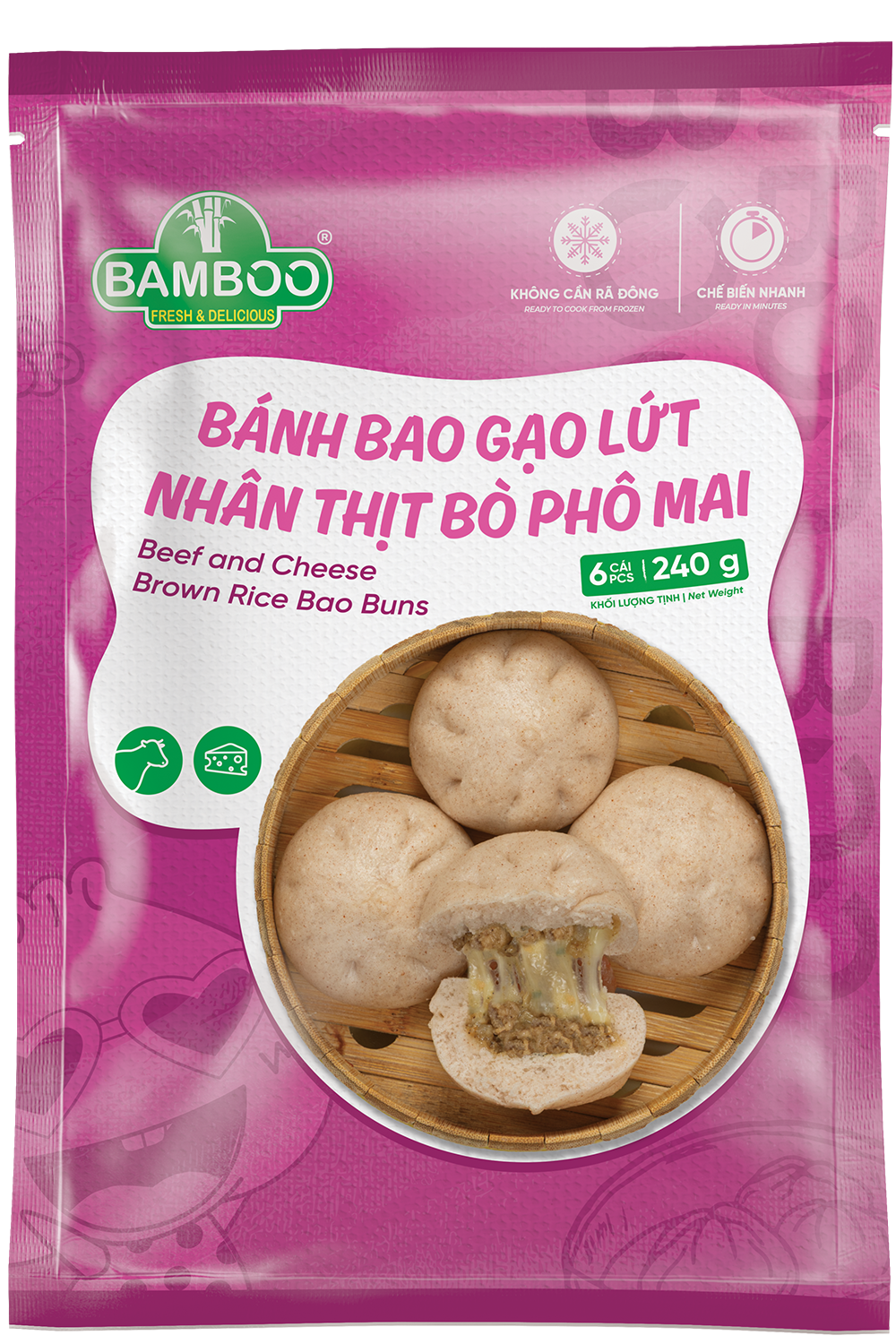 Bánh Bao Gạo Lức Nhân Thịt Bò Phô Mai 240gr – Bamboo ( Hifoods )